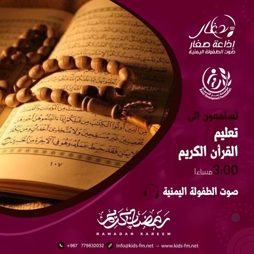 برنامج تعليم القران الكريم في رمضان تستمعون إليه عبر إذاعة صغارنا كل سبت الساعة 3:00 ظهرا